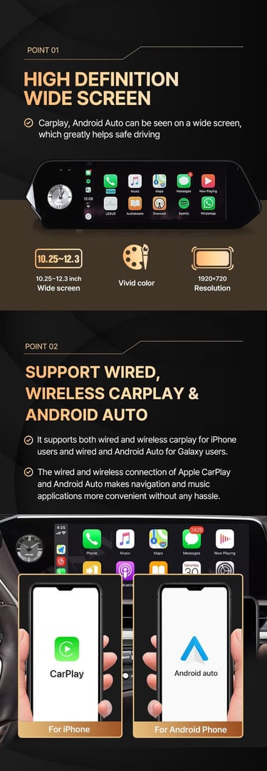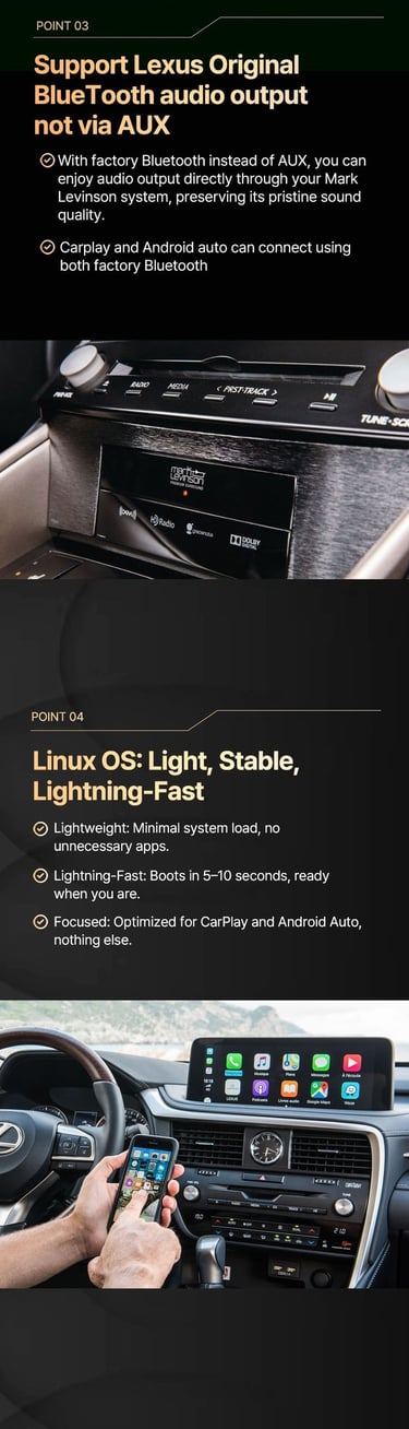 Experience the ultimate driving convenience with our premium Linux-based monitor designed exclusively for Lexus models. Enjoy wireless CarPlay & Android Auto with a smooth, high-resolution display and a user-friendly interface.